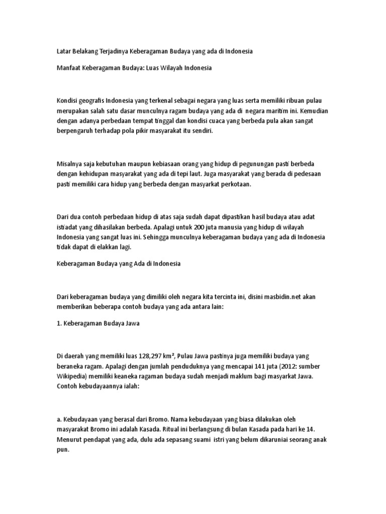 Keragaman budaya yang terdapat di Indonesia sesungguhnya memiliki manfaat tersendiri. Di antara manfaat dari keberagaman budaya adalah sebagai berikut ini. 1. Sebagai Promotor Nilai-Nilai Kemanusiaan . Manfaat dari keragaman budaya yang pertama adalah ia bisa dijadikan sebagai promotor untuk nilai-nilai kemanusiaan itu sendiri.. Manfaat Keberagaman Budaya – Budaya merupakan hasil pemikiran dari sebuah masyarakat yang di implementasikan menjadi suatu kebiasaan, berlangsung lama hingga sukar untuk diubah. Contohnya suku, adat istiadat, bahasa, alat musik, kesenian dan masih banyak lagi..