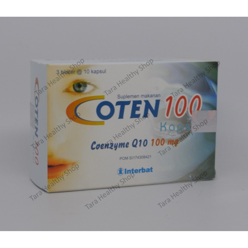 Coten 100 meningkatkan fertilitas pada pria dengan meningkatkan energi di mitokondria sperma serta berfungsi sebagai anti oksidan yang dapat melindungi sperma dari radikal bebas. Coenzym Q10 (Ubiquinone) merupakan antioksidan larut lemak yang berguna untuk meningkatkan produksi energi di dalam sel tubuh yang disebut mitokondria.. Produsen Coten. Interbat Kandungan dan Komposisi Coten Ubidecarenone. Indikasi, Manfaat, dan Kegunaan Coten. Indikasi merupakan petunjuk mengenai kondisi medis yang memerlukan efek terapi dari suatu produk kesehatan (obat, suplemen, dan lain-lain) atau kegunaan dari suatu produk kesehatan untuk suatu kondisi medis tertentu..